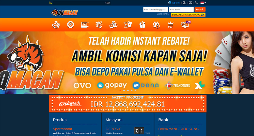 QQMACAN adalah situs judi slot online terpercaya di Indonesia yang memberikan banyak bonus menarik. Ada berbagai pilihan jenis permainan yang tersedia. Kategori permainan yang bisa dinikmati para bettor seperti Slot, Sports, Lotre, Casino, Tembak Ikan, P2P dan lainnya. Provider dari seluruh permainan juga dianggap sangat berkualitas dan memiliki standar internasional. Apalagi situs judi slot online QQMACAN sudah memiliki lisensi PAGCOR. Ini menjadi bukti bahwa seluruh permainan menerapkan gameplay yang sangat fair. Akses setiap permainan di QQMACAN sangat responsif. Bettor bisa menentukan pilihan permainan terbaik dan sangat berkualitas melalui nominal taruhan yang sangat terjangkau. Situs judi slot online QQMACAN menawarkan banyak bonus dan promosi menguntungkan.